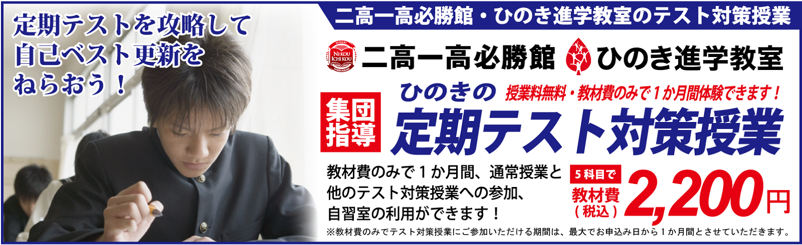 - ★10月19日(日)実施★ 二高一高三高必勝模試 好評のため締め切りを延長!10月に出る評定を判定に反映しているからどこよりも正確な合否判定が可能!