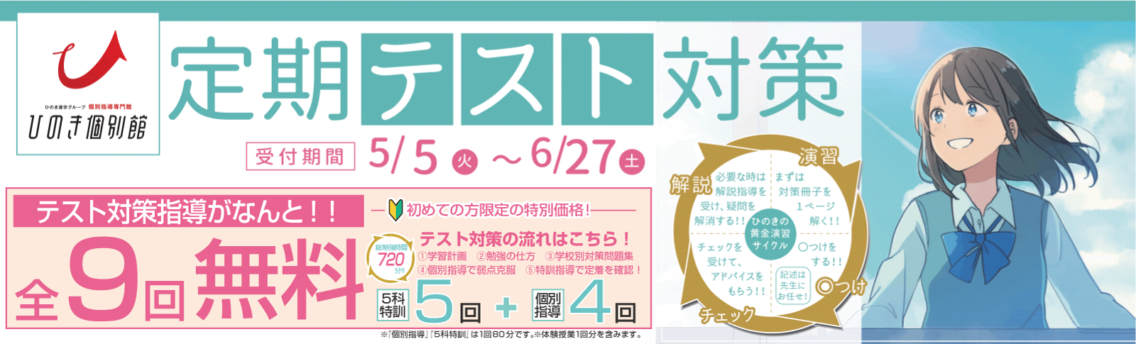 - 【ひのき個別館】定期テスト対策講座のご案内!今年度はなんと9回の無料指導で体験できます!!