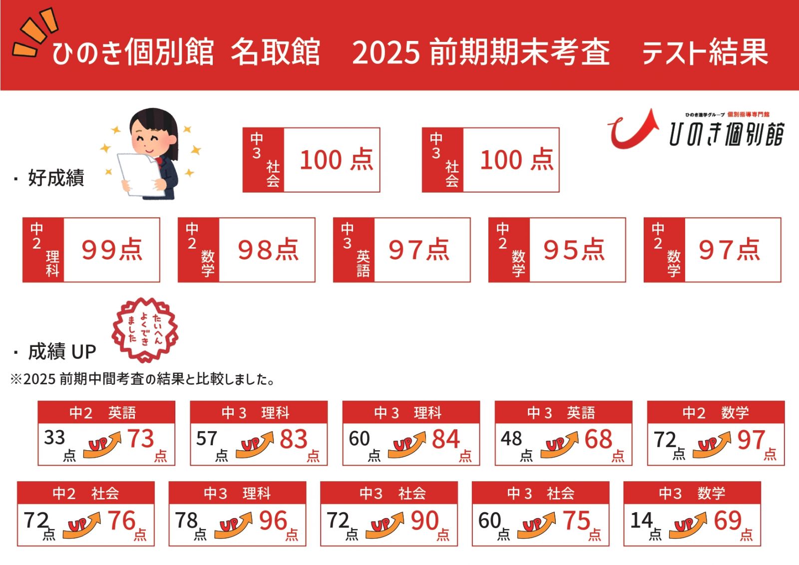 面倒見が良く、安心して通わせることができます。定期面談でいただく先生からのアドバイスはいつも参考になります。個人的には駐車場が広いのと、LINEでやりとりができるのが便利で嬉しいです。(名取一中・保護者)