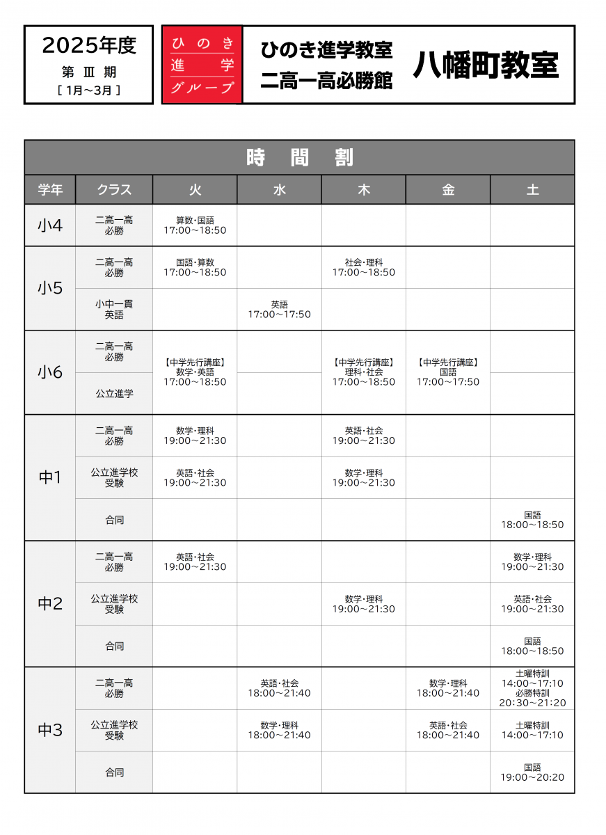 ひのき 八幡町教室のご案内