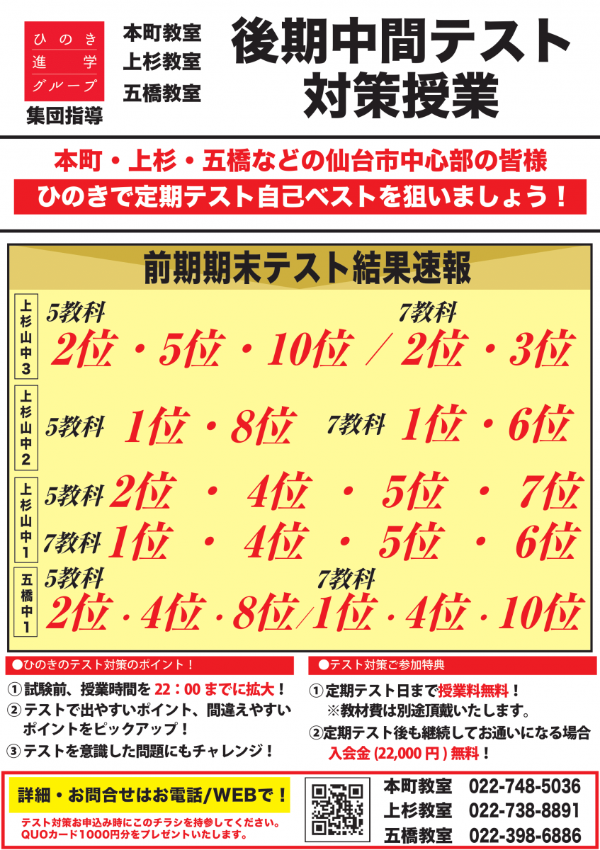 - <中学校>附属中/五橋中/上杉山中/八軒中/秀光中/東北学院中/仙台二華中/仙台青陵中など