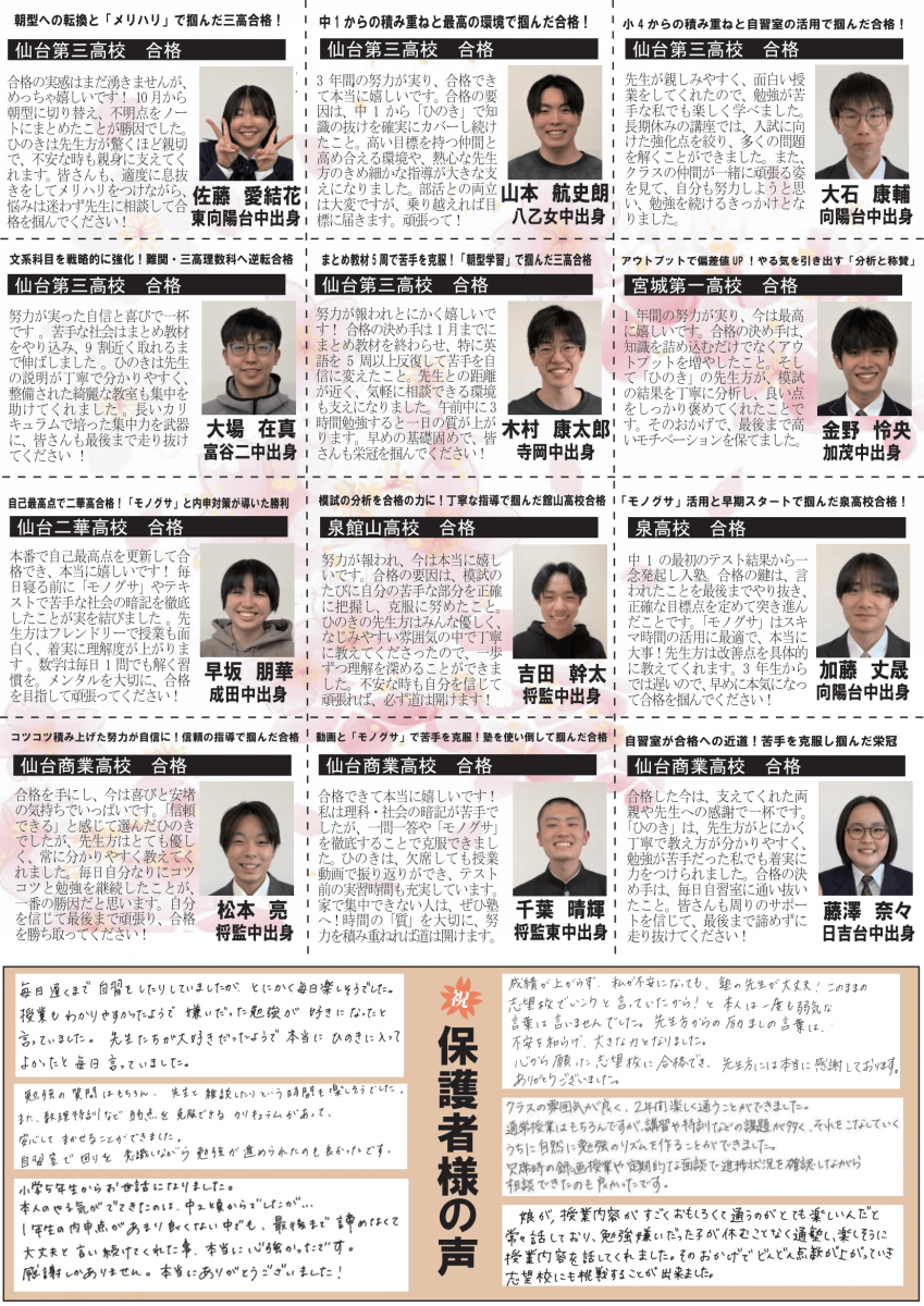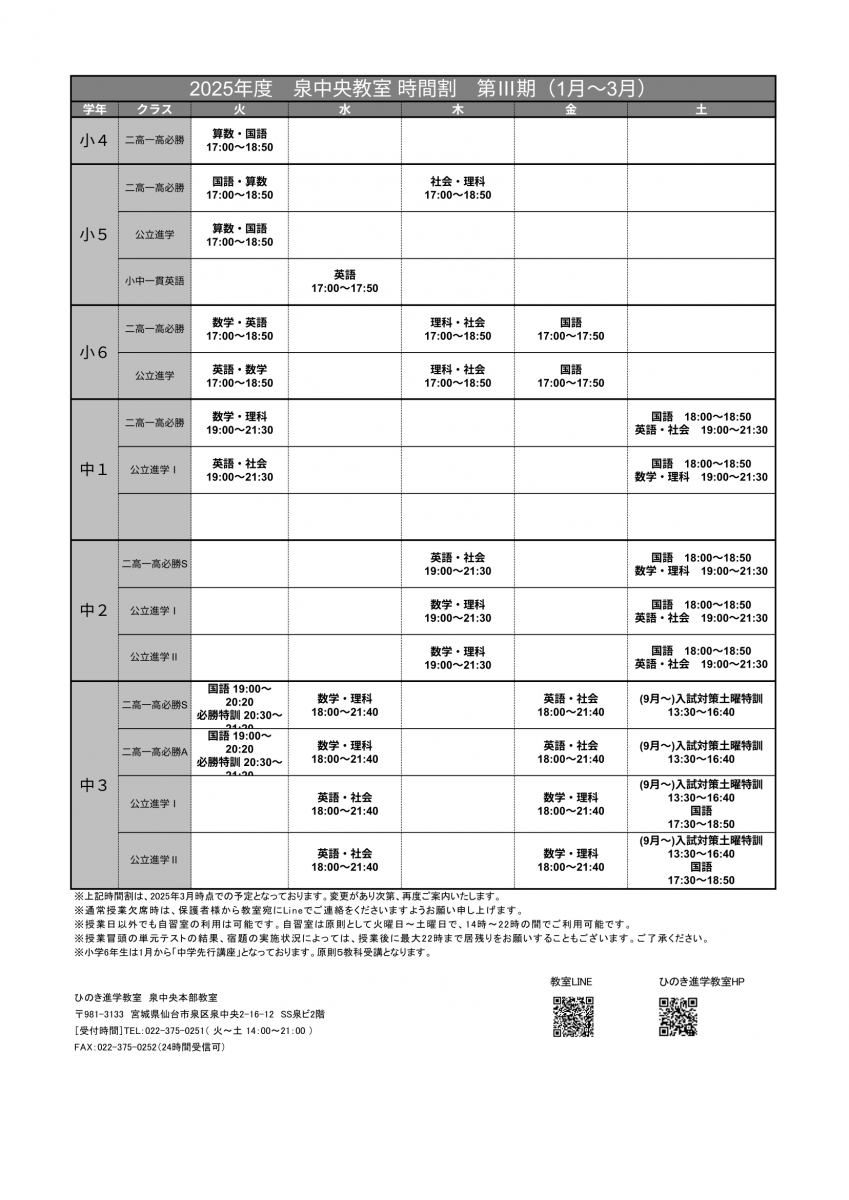 教室のご案内 泉中央本部教室 講師紹介 成績結果&合格実績 画像をクリックすると拡大します 教室からのお知らせ 画像をクリックすると拡大します 教室案内 〒981-3133 仙台市泉区泉中央2-16-12 SS泉ビル2階 (泉中央駅より徒歩5分) Google Map で見る 022-375-0251 022-375-0252 <受付>火~土曜日 14:00~21:00 教室風景 教室の様子① 教室の様子② 教室の様子③ 自習室の様子(自習室は3つあります) 授業日程 LINEで定期的に受験情報・教室情報を発信しています! 登録はこちら↓
