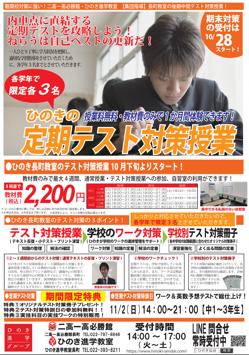 授業は緊張感がありつつ、面白さもあります。また、自習室では沢山の人が真剣に取り組んでいるので自分も集中して勉強ができます。(長町中)
