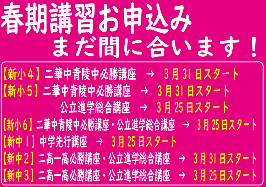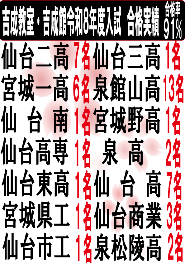 先生方の受験への知識の高さが伺えて安心して子どもを通わせられました。「成績を上げるのが私達の仕事です」というお言葉に、親として最高の味方ができたと感じました。(南吉成中)