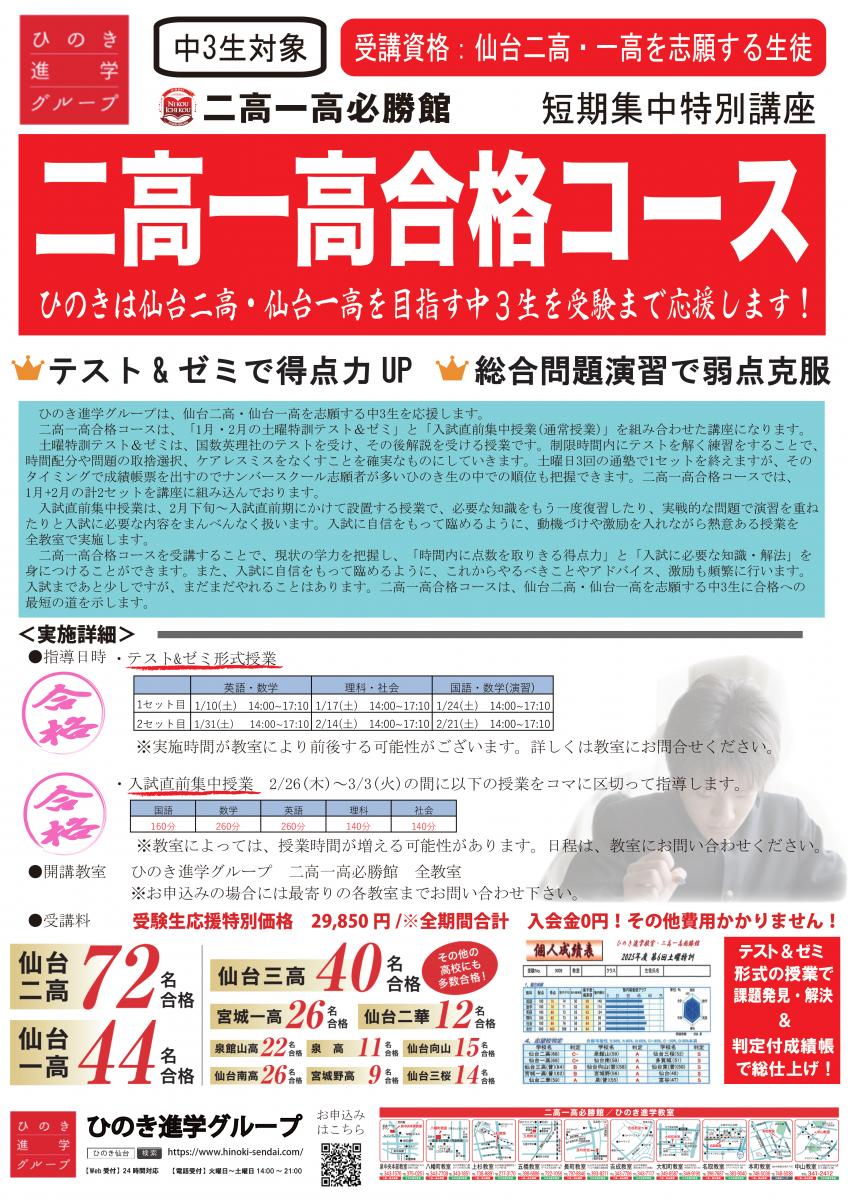 ・受講対象者…仙台二高・仙台一高を受験志望の中学3年生