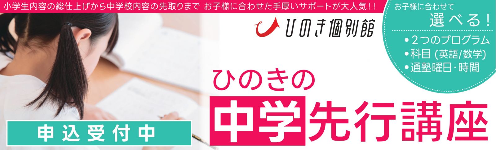 お知らせ ひのき進学グループ 中学先行講座のお知らせ!! 2024.12.24 13:25 ひのき進学グループ中学先行講座のお知らせ!! 各バナーをタップすると、中学先行講座の詳細をご確認いただくことができます。 ◎集団指導 ・周りの生徒たちと競い合いながら高みを目指したい人におすすめ! ◎個別指導 ・自分の伸ばしたいところに合わせて授業内容をカスタマイズしてほしいという人におすすめ! 「お知らせ」一覧