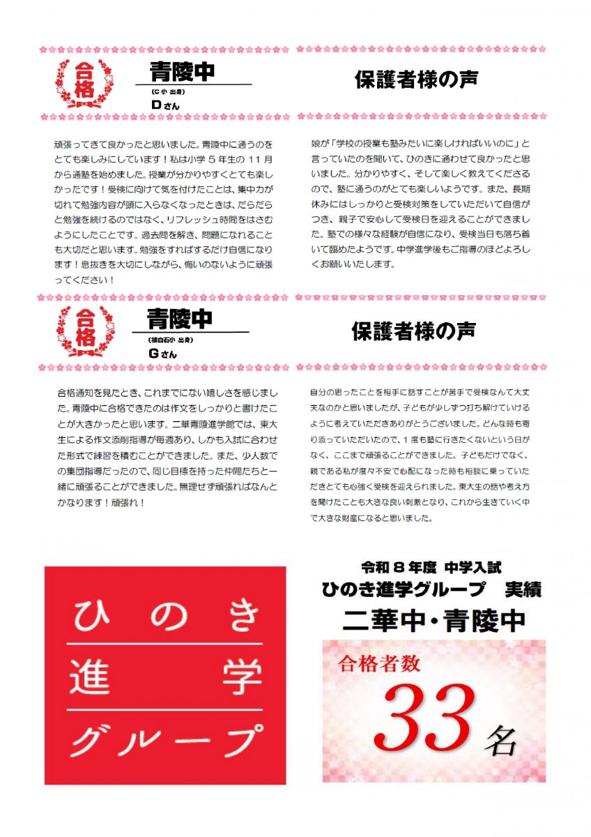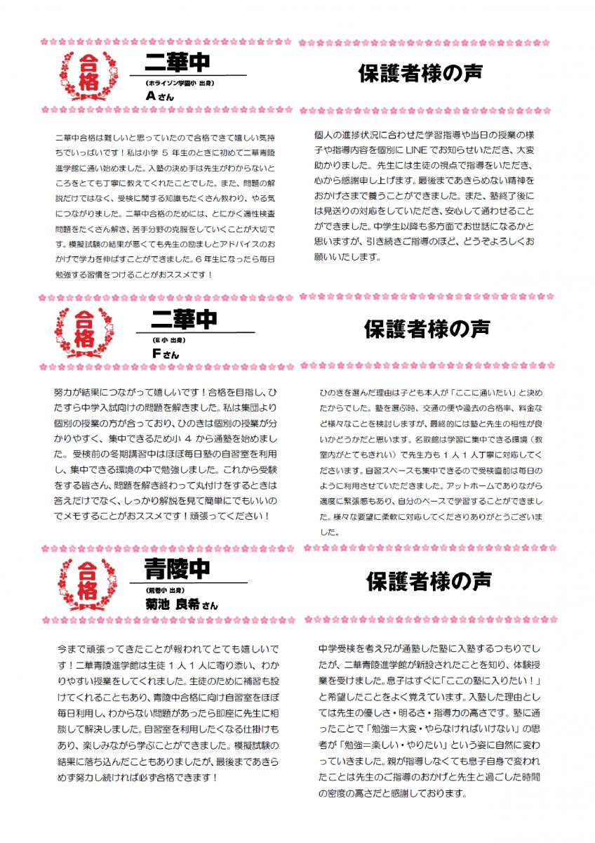 2024年度 二高一高必勝館合格体験記【保護者様の声】